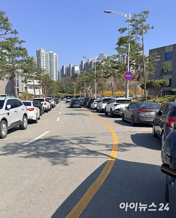 평택 배다리도서관 인근 도로 불법주정차 방치…사고 위험 증가