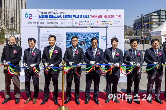 다양한 취재 현장을 스토리가 있는 생생한 사진으로 [아이포토]에서 만나보세요. 7일 서울 종로구 광화문 광장에서 열린 제62회 한국보도사진전 ‘오늘의 보도사진, 내일의 역사가 되다’ 개막식에서 참석자들이 개막을 알리는 커팅식을 하고 있다.......