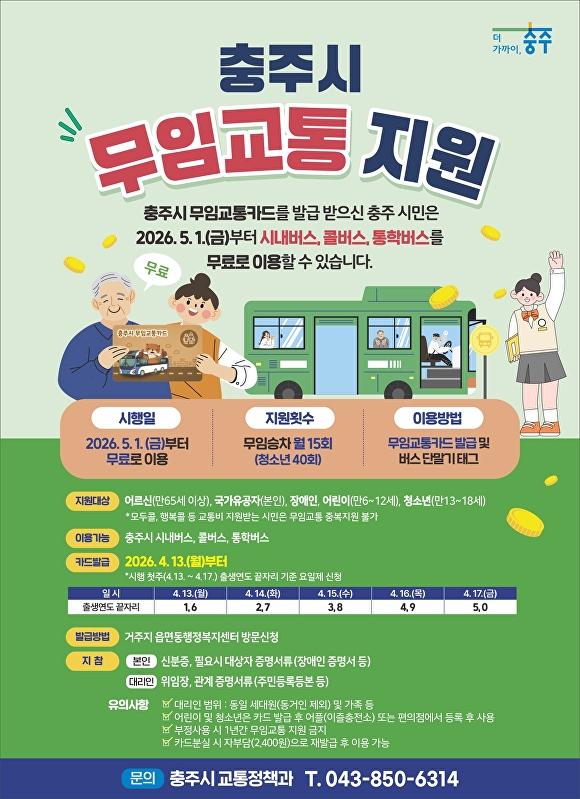충주시, 어린이·청소년·노인 무료 시내버스 지원