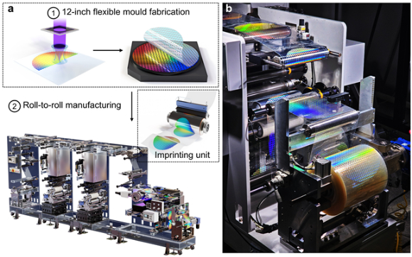 국내 연구팀, 메타렌즈 대량생산 기술 개발 국내 연구팀이 기존 카메라 렌즈보다 수백 배 얇으면서도 빛을 자유자재로 조절하는 ‘메타렌즈’를 마치 신문을 인쇄하듯 초고속으로 대량 생산할 수 있는 기술을 내놓았다. 과학기술정보통신부(부총리 겸 과기정통부 장관 배경훈)는 성균관대 선도연구센터 조규진・김인기 교수 연구팀과 포항공대 노준석 교수 연구팀이 가시광 영역에서 동작하는 메타렌즈를 초당 300개 이상의 속도로 생산할 수 있는 ‘롤투롤(Roll-to-Roll) 나노 인쇄(Nanoimprint)’ 공정 기술을 공동 개발했다고 16일 발표했다.......