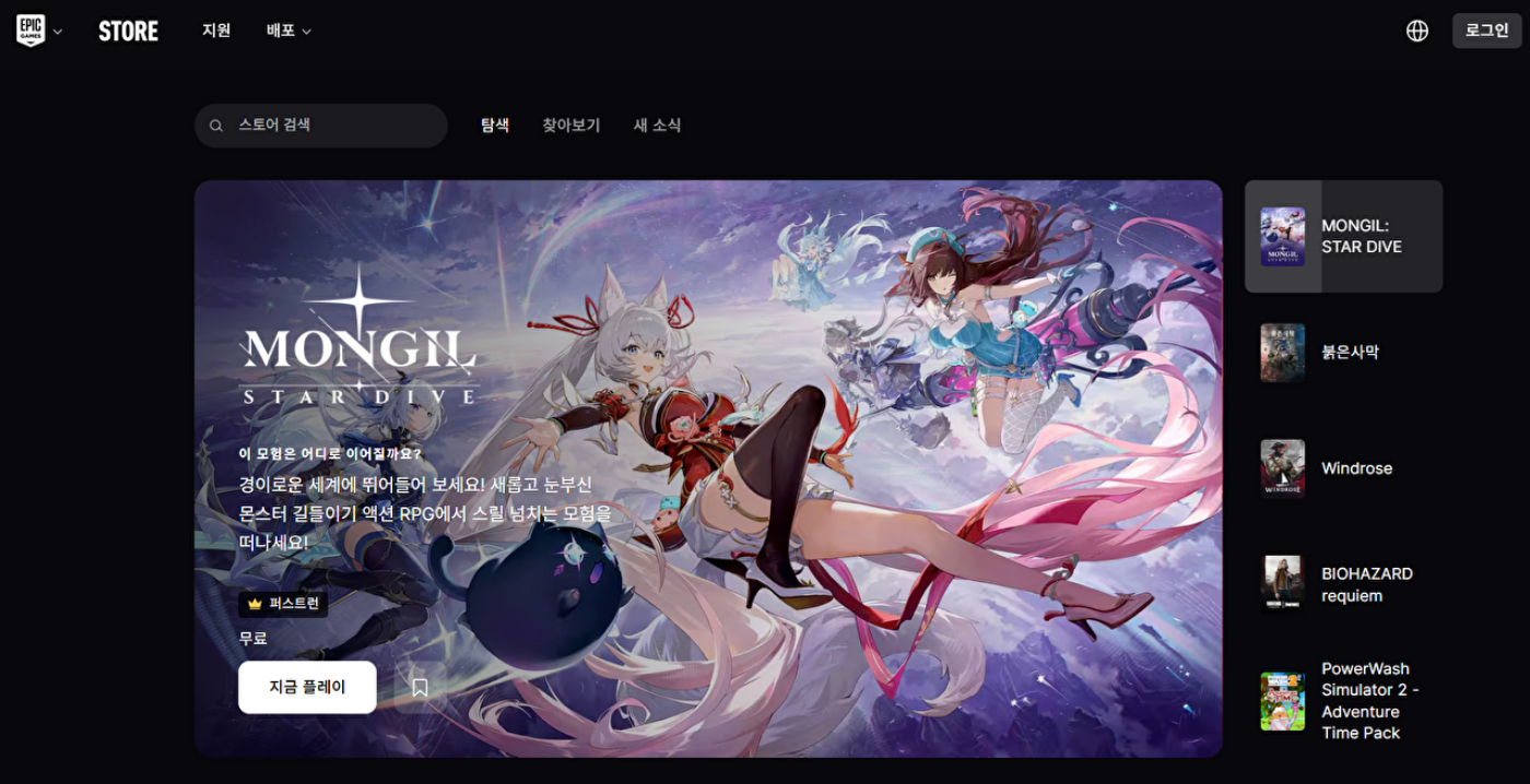 에픽게임즈 스토어 독점 출시 통해 마케팅-수익 극대화 포석 넷마블이 신작 '몬길: 스타다이브'의 서비스를 시작한 가운데 '스팀'은 출시 플랫폼에서 배제하는 전략을 택했다. 에픽게임즈 스토어에 몬길: 스타다이브를 독점 제공해 마케팅 지원을 받고 수익을 극대화하겠다는 계산이다. 16일 게임업계에 따르면 넷마블(대표 김병규)은 지난 15일 신작 몬길: 스타다이브를 출시했다. 구글플레이와 애플 앱스토어를 통해 모바일 버전을 플레이할 수 있으며 PC 버전은 자체 PC 버전 및 에픽게임즈 스토어에서 다운로드 가능하다. 스팀에는 선보이지 않았다.......