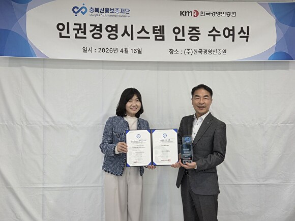 충북신용보증재단, 인권경영시스템 인증 획득 입력 2026.04.16 오후 5:40 충북신용보증재단이 16일 한국경영인증원의 인권경영시스템 인증을 받았다. 김창순 충북신보 이사장은 "인권 존중의 가치를 기관 운영 전반에 반영한 성과"라며 "공정하고 책임 있는 경영을 바탕으로 인권 친화적 조직문화를 정착시키겠다"고 말했다. 지난 2019년 인권경영 선언문을 제정한 충북신보는 인권영향평가, 인권교육, 인권침해 구제절차 마련 등 인권친화적 경영환경 만들기에 힘써 왔다....... 기사 전체 보기 https://www.inews24.com/view/1960982 이 포스팅은 쿠팡 파트너스 활동의 일환으로, 이에 따른 일정액의 수수료를 제공받습니다.