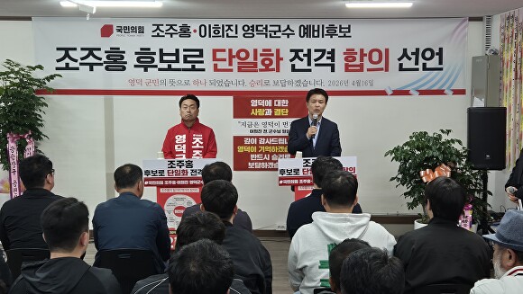 공동담화문 발표…세일즈 군정·공정 인사·예산 투명성 등 3대 혁신 과제 제시 이희진 전 영덕군수와 조주홍 영덕군수 예비후보가 16일 조주홍 예비후보로의 단일화에 전격 합의하고 이를 공식 선언했다. 양측은 이날 오후 6시 30분 조주홍 예비후보 선거사무소에서 지지자들이 참석한 가운데 공동 담화문을 발표하고, 분열을 끝내고 하나로 힘을 모아 영덕의 변화를 만들어가겠다는 뜻을 밝혔다.......