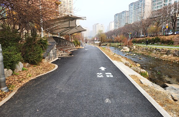 성복동 728번지 일원…안전한 하천 산책로 조성 경기도 용인특례시 수지구는 성복천 일원 자전거도로를 정비하는 ‘성복천 자전거도로 개선사업’을 완료했다고 17일 밝혔다. 이번 사업은 단절된 자전거도로 구간을 연결하고 보행자와 자전거 이용자의 동선을 분리해 안전하고 쾌적한 하천 이용환경을 조성하기 위해 추진됐다.......