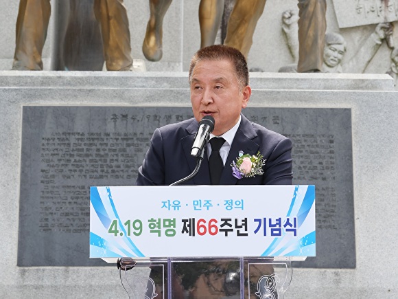 충북 4·19혁명기념사업회(회장 김현수)는 19일, 충북 청주상당공원 4·19학생혁명기념탑 앞에서 66주년 4·19혁명 기념식을 가졌다. 이 자리에는 김영환 충북도지사를 비롯해 지역 국회의원과 도내 주요 기관·단체장, 419혁명기념사업회 회원, 시민 등 100여명이 참석했다.......