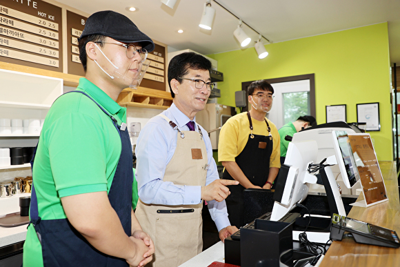 윤건영 충북교육감, 장애 학생 카페 체험…현장 소통