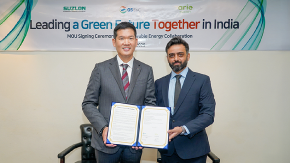 리파워링·ESS 결합으로 수익 구조 다변화⋯현지 기업과 맞손 GS건설이 인도 재생에너지 시장에서 현지 기업과의 협력을 확대하며 사업 포트폴리오 다변화에 나섰다. GS건설은 인도 재생에너지 기업 아리 에너지(Arie Energy), 수즐론 에너지(Suzlon Energy)와 각각 업무협약(MOU)을 체결하고, 풍력 리파워링과 태양광·풍력·ESS를 결합한 사업에 본격 진출한다고 21일 밝혔다.......