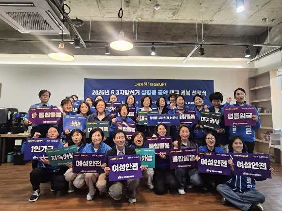 전국여성위 공약 선포식 개최…“지방정부가 삶의 질 결정, 성평등은 핵심 과제” 더불어민주당이 6·3 지방선거를 앞두고 성평등 의제를 전면에 내세우며 정책 경쟁에 불을 지폈다. 첫 선포식을 대구에서 열며 전국 확산의 출발점으로 삼겠다는 전략이어서 정치적 메시지에도 관심이 쏠린다. 더불어민주당 전국여성위원회(위원장 이수진)는 21일 대구시당 회의실에서 ‘성평등 공약 선포식’을 열고 성평등 정책 복원과 제도화 의지를 공식화했다. 이번 선포식은 6·3 지방선거를 앞두고 전국 단위 성평등 공약 확산의 신호탄 성격을 띤다.......