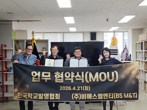 과학 실험 장비 인프라 지원 강화…학생·교원 대상 발명 캠프 및 세미나 공동 개최 사단법인 한국학교발명협회와 주식회사 비에스엠엔티는 과학교육·발명교육 활성화를 위한 업무협약을 21일 체결했다. 이번 협약을 통해 긴밀한 협력체계를 구축하고 학교 현장의 발명 교육 환경을 개선한다. 세부 협력 분야는 △지능형 과학실·발명교실 등 창의 융합 공간 인프라 지원 △우수 과학 실험 장비·발명 교육용 기자재 공동 개발·보급 △학생·교원 대상 발명 캠프와 워크숍 운영 △협회 주관 발명대회·페스티벌 기술 지원 등이다.......